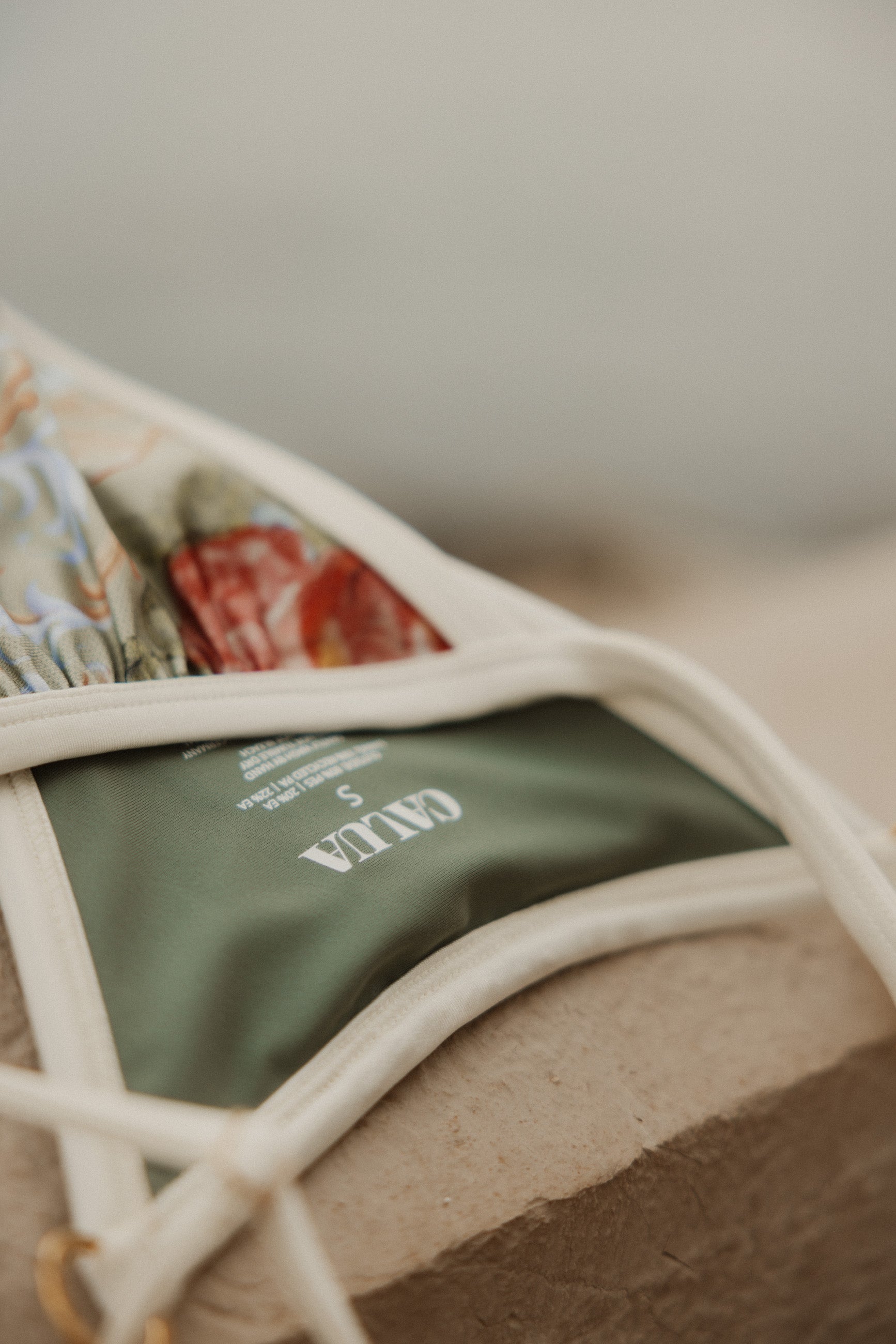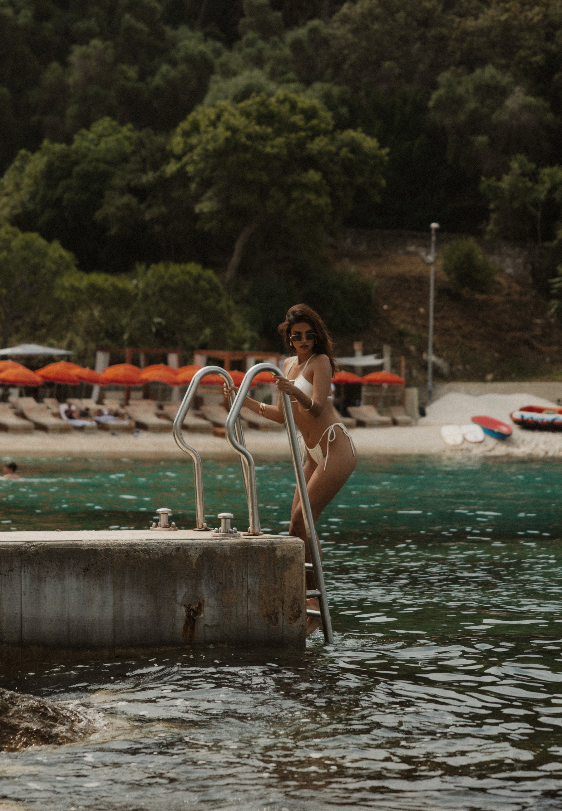 Infused with the timeless elegance of old money aesthetics and a modern twist, we introduce you to the dreamy glamour of the Côte d’Azur. Imagine the soft glow of champagne sands, the lush greenery and vibrant red roses of Mediterranean gardens, and the deep, mysterious allure of moonlit nights reflecting on glamorous yacht decks. All these elements come together in a bikini collection designed to be as cheeky as it is dreamy.